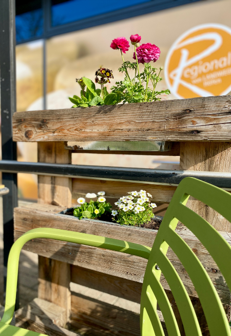 Draußen stehen jetzt rund 15 zusätzliche Sitzplätze zur Verfügung. Neue geschützte Sitzbänke und Stühle sorgen dafür, dass ihr auch bei Wind, Regen oder norddeutschem Mixwetter entspannt sitzen könnt. So wird der Platz vor dem Markt noch mehr zum Treffpunkt für die Nachbarschaft.